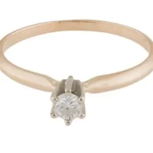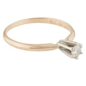 Precious little diamond ring with a Tiffany style setting. 14k yellow gold. Makes a great pinky ring! Size: 5