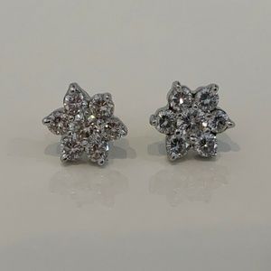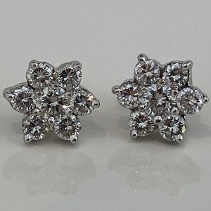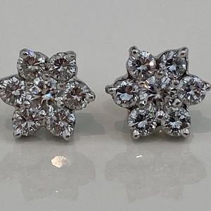 DIAMOND ROUND BRILLIANT FLOWER STUD EARRINGS 1.4CT