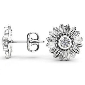 ¥ DIAMOND STERLING SILVER SUNFLOWER STUD EARRINGS