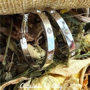 DIAMOND STYLE HOOP SILVER EARRINGS
