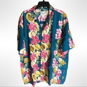 DIAMOND HEAD SPORTSWEAR Men’s Hibiscus & Fruit Rayon Hawaiian Aloha Shirt XL