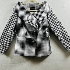 DIANA Houndstooth Black&White Shawl Collar Dbl Breasted Waist Length Blazer Sz 8