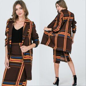 Ultra Chic, This #streetstyle overcoat features a colorful plaid design, a basic collar, notched lapels, concealed front snap-button, long sleeves, and a long-line silhouette.