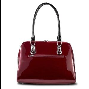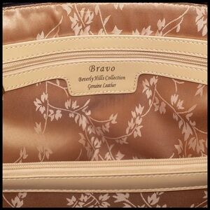 Enamel Coated Italian Calfskin Leather Gold Leaf Embroidered Cotton Polyester Twill Lining Inner Zipper Middle Pocket Outside Rear Zipper Pocket 1 Inner Zipper Side Pocket, 2 Inner Side Pockets (For Cell/PDA) Nickel Plated Hardware Feet