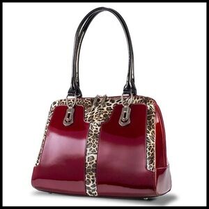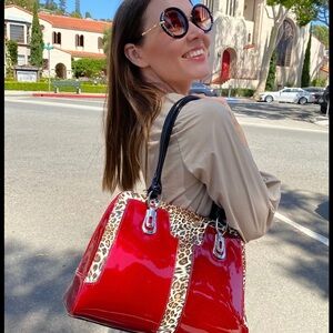 DIANA RED LEOPARD PRINT LEATHER HANDBAG