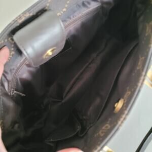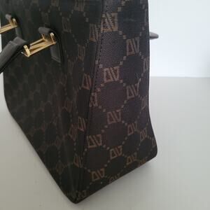 DIANA VALENTINO Study Handbag Tote Bag Brown Canvas Monogramed Medium Vintage