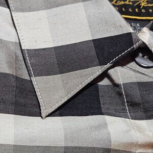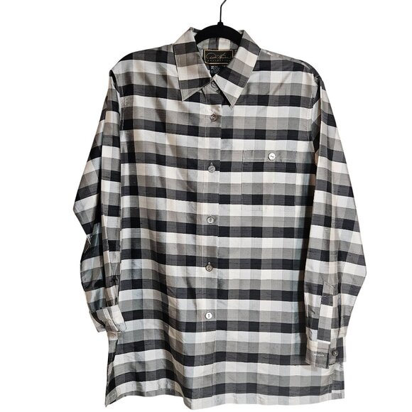 DIANE GILMAN Collection Woman's Black & Gray Plaid 100% Silk Long Sleeve Med