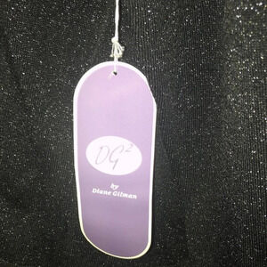 DIANE GILMAN DG2 1X Plus Size Black Silver Metallic Flecks Beads Keyhole Sweater