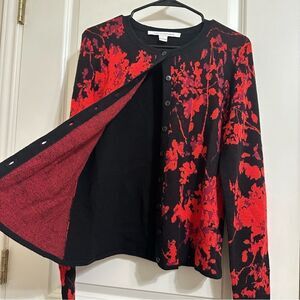 DIANE VON FURSTENBERG ABSTRACT NEW IBIZA JACQUARD MERINO WOOL CARDIGAN LARGE
