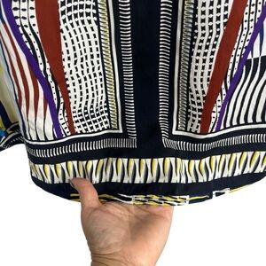 DIANE VON FURSTENBERG Alana Multicolor Geometric Silk Blouse Tunic Top 12 DVF