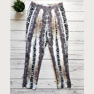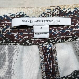 DIANE VON FURSTENBERG Atlas Snake Print Silk/Linen Brown Tan Loose Pants, 6