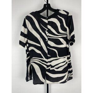 DIANE VON FURSTENBERG Black White Animal Zebra Button Back Short Sleeve Blouse M