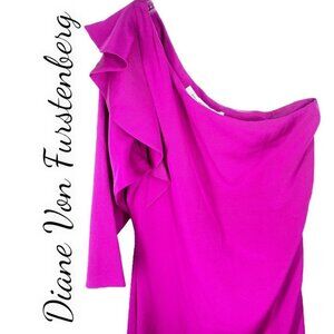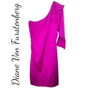 DIANE VON FURSTENBERG Cobb Magenta Pink One Shoulder Silk Mini Cocktail Dress, Size 8