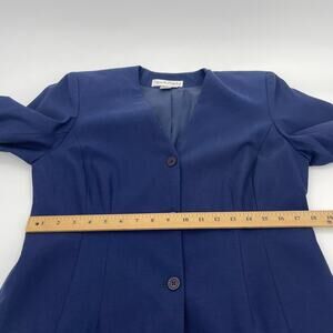 DIANE VON FURSTENBERG Collarless Blazer Jacket Size 12 Blue Cotton Silk Button