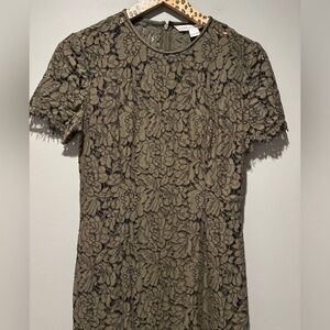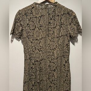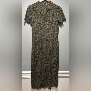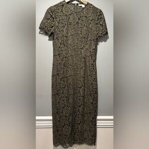 DIANE VON FURSTENBERG | DVF Green Carly Lace Overlay Short Sleeve Midi Dress