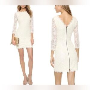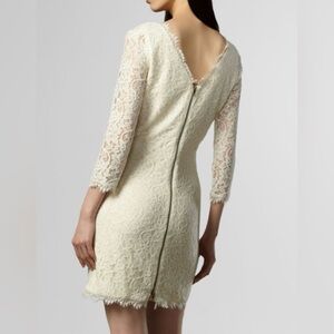 DIANE VON FURSTENBERG Designer Zarita Ivory Lace Shift Dress Mini DVF Size 10