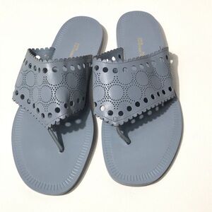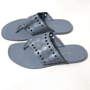 DVF perforated nappa leather slip on thong sandal slides features perforation detail with scalloped trim edge design. Leather upper & lining. Man-made outsole.