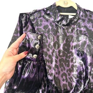 DIANE VON FURSTENBERG Ellie Leopard Metallic Velvet Mini Dress Purple NWT Sz2