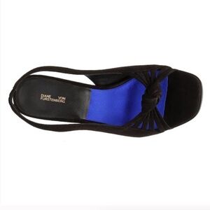 These are a pair of Farah black suede slingbacks by Diane Von Furstenberg.They are called, Diane von Furstenberg DVF Farah Suede Knot Stiletto Pump Heeled Sandal Color: Black Size: US 7.5, EU 37.5