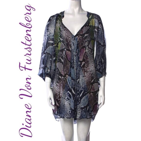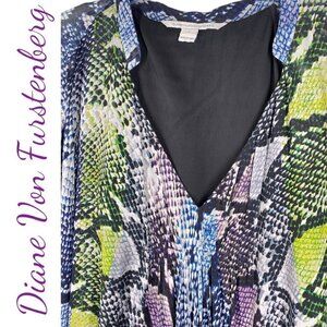 DIANE VON FURSTENBERG Fleurette 100% Silk Snake Print Multicolor Mini Cocktail Dress, Size 2