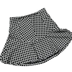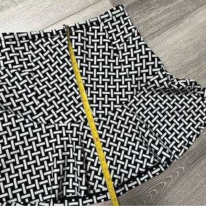 Diane Von Furstenberg black & white patterned A-line skirt with a ruffle/flare at the bottom