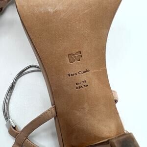 DIANE VON FURSTENBERG Frankie Heeled Sandal Womens 8 Tan leather Anklet Accent