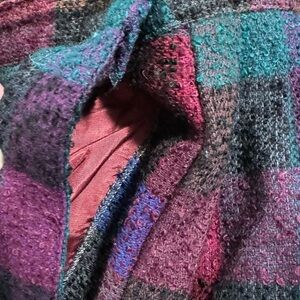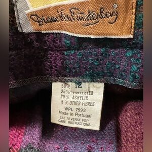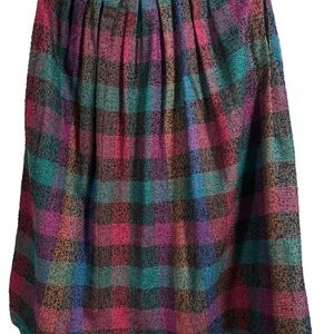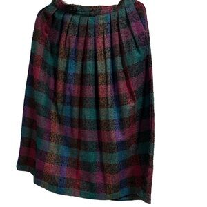 Vintage Diane Von Furstenberg jewel toned, plaid knit skirt with loose pleating from the top. Sits at the waist.