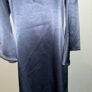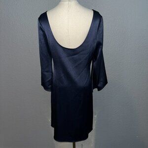 DIANE VON FURSTENBERG KORRY NAVY SATIN LOW BACK FLUTED SLEEVE SHIFT DRESS Size 6