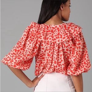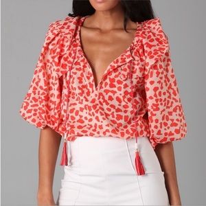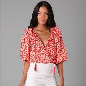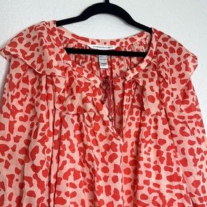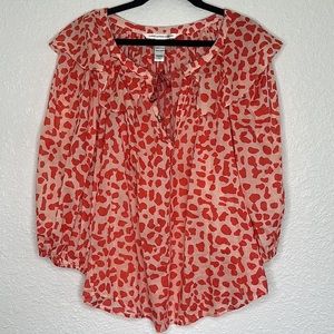 Diane Von Fursetenberg Keoni animal print ruffle cotton top. Size 6. Super lightweight and comfy. Tassel tie detail at neckline. Gently preowned. Smoke free home.