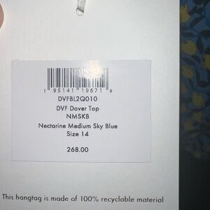 DIANE VON FURSTENBERG NWT Dover Top Nectarine Medium Sky Blue Top Size 14