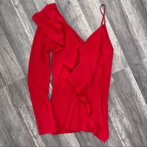 DIANE VON FURSTENBERG One Sleeve Red Blouse 100% Silk Size 0