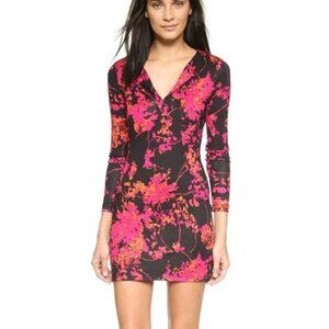 DIANE VON FURSTENBERG Reina Floral Daze Sheath Dress Silk Jersey Mini Long Sleeve Stretch Colorful Black Pink Orange
