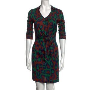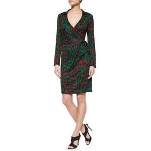 DIANE VON FURSTENBERG Savannah Leopard-Print Wrap Dress Silk Size US 2 Women's
