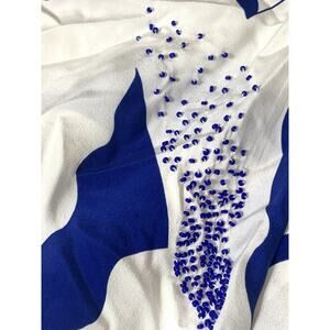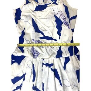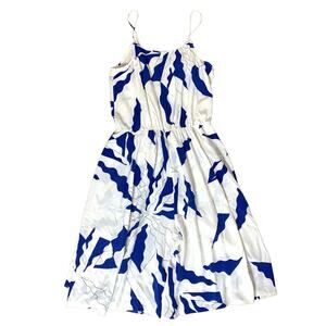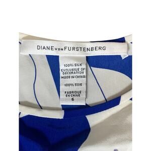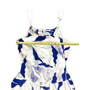 DIANE VON FURSTENBERG Silk Shorts Jumpsuit 6 Blue White Pockets Spaghetti EUC