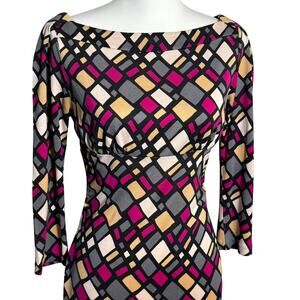 DIANE VON FURSTENBERG Size 8 100% Silk Pink Geometric Print Colorful Midi Dress