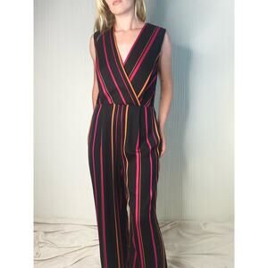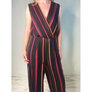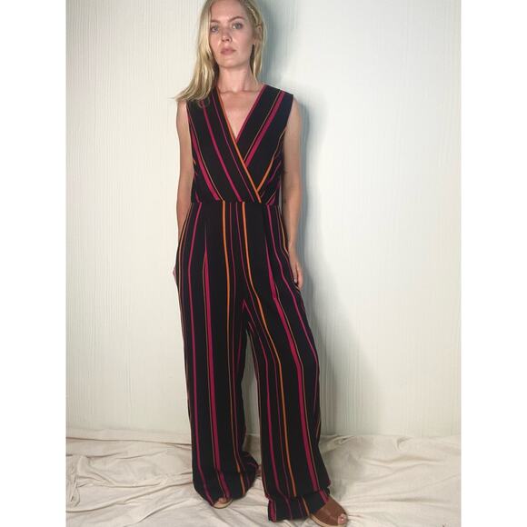 DIANE VON FURSTENBERG Striped Crossover Multicolor Sleeveless Jumpsuit US 8