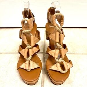 DIANE VON FURSTENBERG THEIA TAN NATURAL WEDGE SANDALS boho gladiator women’s 9M
