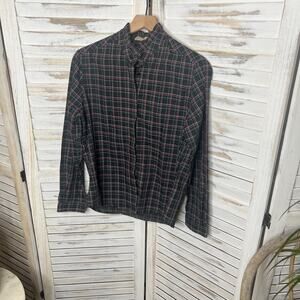 DIANE VON FURSTENBERG VINTAGE Secretary Plaid Button Front Top Ruffle Collar 12
