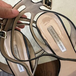 Elevate your style with these stunning Diane von Furstenberg Vera leather heels. Crafted with high-quality black calf leather, these pumps feature an open toe design and adjustable buckle straps for a comfortable fit. The stiletto heel stands at a high 3-3.9 inches, making them perfect for any formal occasion, from weddings to parties. These heels are not only stylish but also functional, with a breathable design and synthetic outsole material. The Diane von Furstenberg logo adds a touch of designer flair, making them a must-have for any fashionista. Whether you're dressing up for a special event or adding a touch of sophistication to your everyday look, these heels are the perfect addition to your shoe collection.