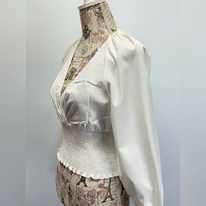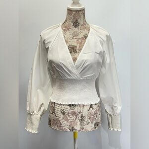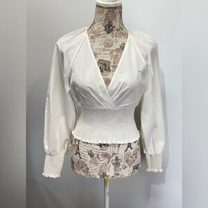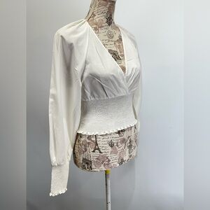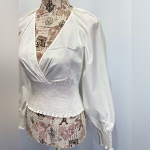 DIANE VON FURSTENBERG White surplice smocked waist Blouse size S