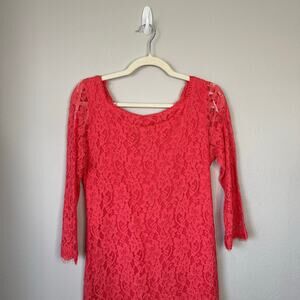 DIANE VON FURSTENBERG Zarita Dress Coral Lace Size 12 Mini Sheath Cocktail