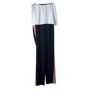 DIANE VON FURSTENBERG x REVOLVE Amare Color Block Jumpsuit in "ivory and black" (looks white in model picture, but it is actually off white/ivory). Elasticized neckline. Hidden zipper closure. Contrast side panels. Boned bodice with overlay.