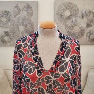 FM25 (tags: DVF, top, shirt, blouse, women's, botanical, flowers, 1970's, retro, 70's, work, office, professional, business casual, light weight, size small, vintage)