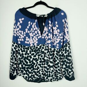 DIANE VON FURSTENBERG | Mikino Colorblock Pleated Dot Print Top Women’s Size 14