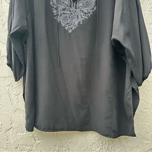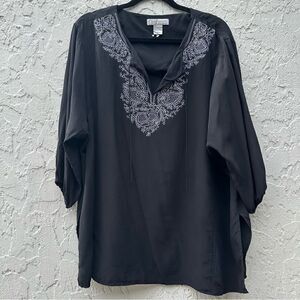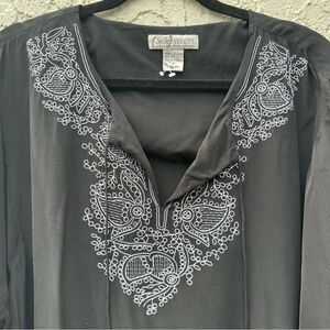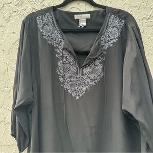 DIANE VON FURSTENBURG Silk Tunic Blouse Top Women’s Size 1X Boho Embroidered