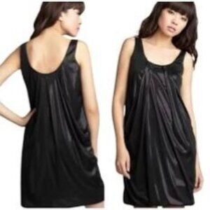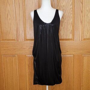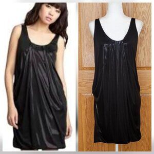 Slick, ultra-modern fabric has an almost liquid feel and drapes beautifully in a tank dress styled with a subtle bubble hem and incredible shine. Scoop-neck front and back. Side pockets. Lined.