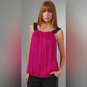 DIANE von FURSTENBERG MARSTON RASPBERRY TOP Sleeveless Silk Size 6 Ribbon Straps