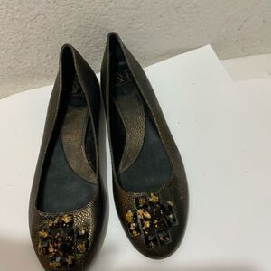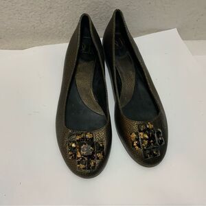 DIANE von FURSTENBERG Metallic and Black Jewel Embellished Ballet Flats