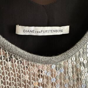 DIANE von FURSTENBERG | Silver and Black Sequin Drop Tail Tank Top | Size 2