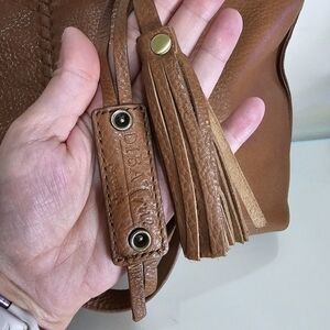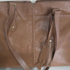 DIBA TRUE Brown 100% Pebbled Leather Double Strap Tasseled Purse Hand Bag